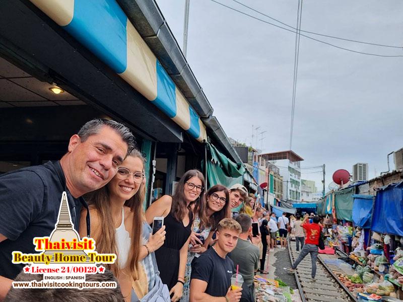 things quickly, when the train passed, they went on sale as usual, exciting, and impressive a lot, and then continue to the floating market takes 30-40 mins arriving. Embark on the longtail boat to visit its landscape on the shore of the Klong or canal and market of various products, incredibly beautiful and incredible how the local people live, it is an ecotourism tourism.