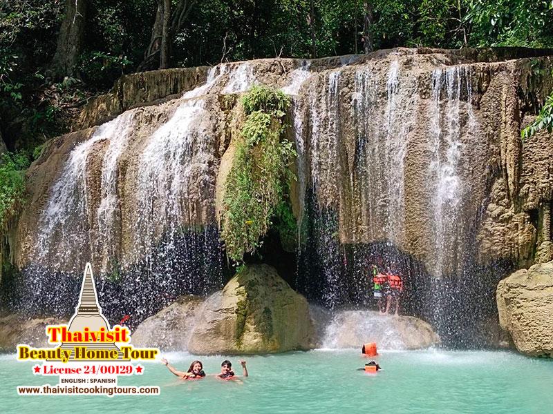 At 6.30 a.m. leave the hotel in Bangkok area to see the Erawan waterfall, it takes 3.30 hrs to arrive, located in Kanchanaburi province, (open 7:00 a.m.-4:30 p.m.) Lunch at a local Thai restaurant