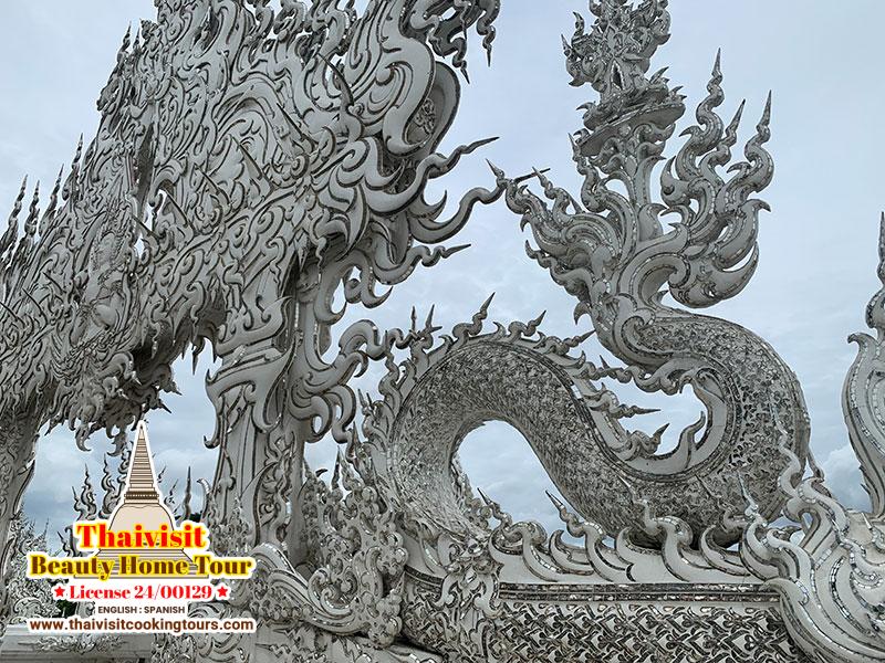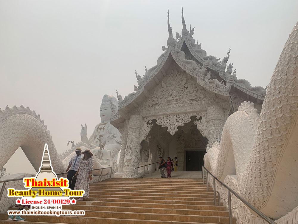 It takes about 10 mins from blue temple to visit a vegetarian temple called wat Huayplakang with her statue of a woman monk named Guan Yin and statues of Dragones decorate along the staircase. So, make sure that it is a day you have with many beautiful pictures to remember.