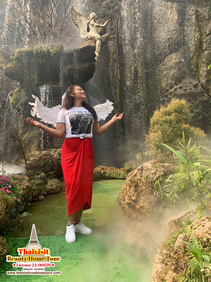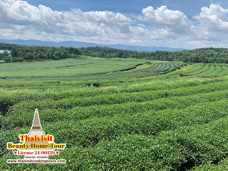 Latita café with a rainforest garden where you can enjoy and relax in the garden and waterfall manmade, full of moss sticking on the bark of the trees. Get your good mood and fresh air, in your choices tasting local coffee and coconut cakes also at the end, we stop at a Tea plantation on the way back home at Singh Park, is a big farm before arriving in Chiagmai.