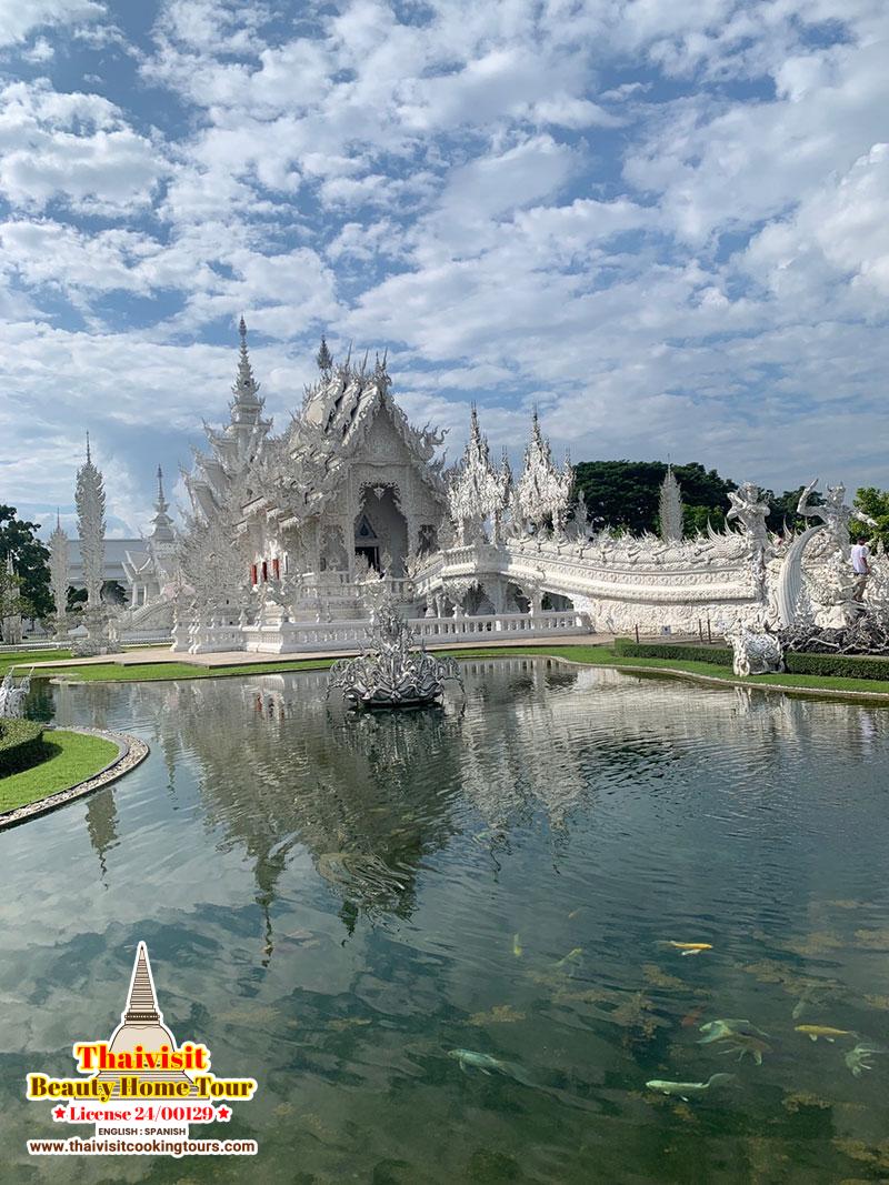Hace 1 hora al llegado de agua termal, paramos en camino parada puede mojarse los pies como el spa, hace 20 min. Más o menos. Continuar hace 2 hr. llegar al templo wat Ronkhun o se llama temple blanco y Templo azul. En la tarde visitar la casa negra , templo wat Huay Pla Kang Buda vegetariana y estatuas de Dragones gran , almuerzo local y luego salir directamente a Chiangmai