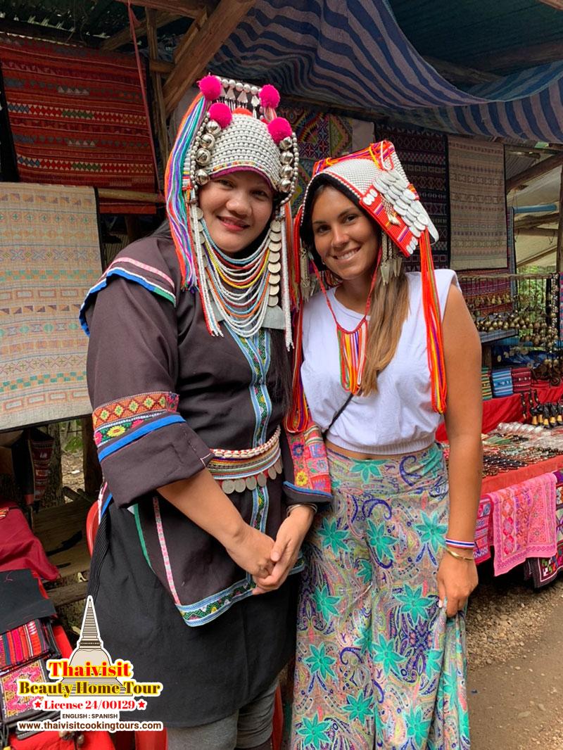 subir para la zona más alta, las pagodas gemelas y hiking hace 1.45-2hrs pasando muchas las cascadas en camino Phadokseaw hasta el pueblo de gente local en Ban Maeklang Luang donde se terminar el hiking ( un vecino de Karen ),el mercado local de tribu Hmong que viven y cultivan las verduras y frutas ,se lo ve también