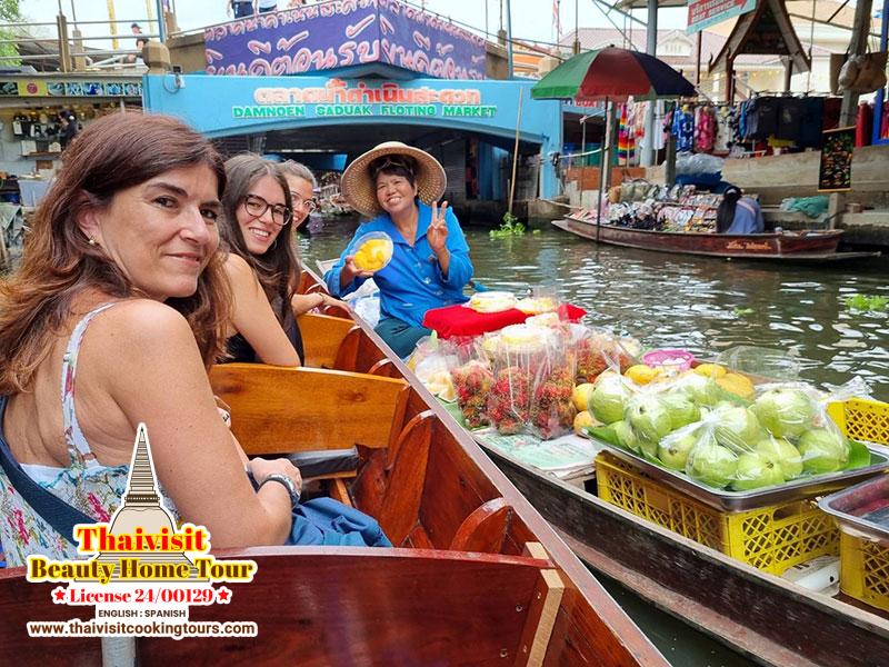 Pick you up from your hotel at 7:00 a.m. First straight to the train market takes about an hour and a half. Upon arrival, you find the life of people, how business is done, they sell all vegetables and fruits, meals, cooked food, ingredients, chili paste, fish sauce, souvenirs, etc. We can taste some delicious fruits here. They are sold on the train tracks; people buy before the train arrives. There was a voice to warn the villagers to move things quickly, when the train passed, they took out the sale as usual, exciting, and impressive a lot, there sell thing every day but, in the morning, time is the suitable to go for a visit